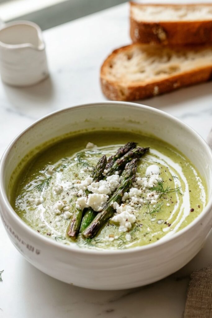 Alton Brown’s Asparagus Soup is a luxurious, restaurant-quality celebration of spring produce. By gently simmering fresh asparagus with sweet onions, garlic, and dill, then pureeing it into a rich base of stock and heavy cream, you get an incredibly smooth and comforting bowl. Finished with a bright hit of fresh lemon juice and salty crumbled feta, it strikes the perfect balance between rich, earthy, and refreshing.