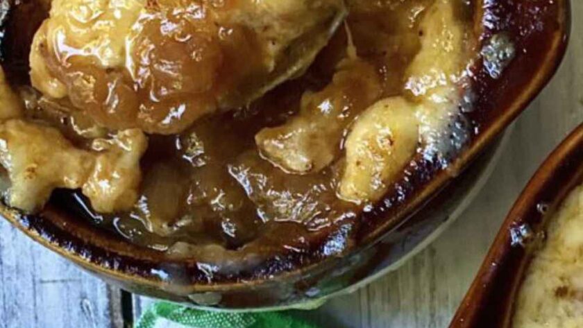 This Alton Brown French Onion Soup Recipe is rich and savory, which uses sweet onions and Gruyere cheese. It’s the ultimate comfort food recipe, ready in about 1 hour and 45 minutes.
