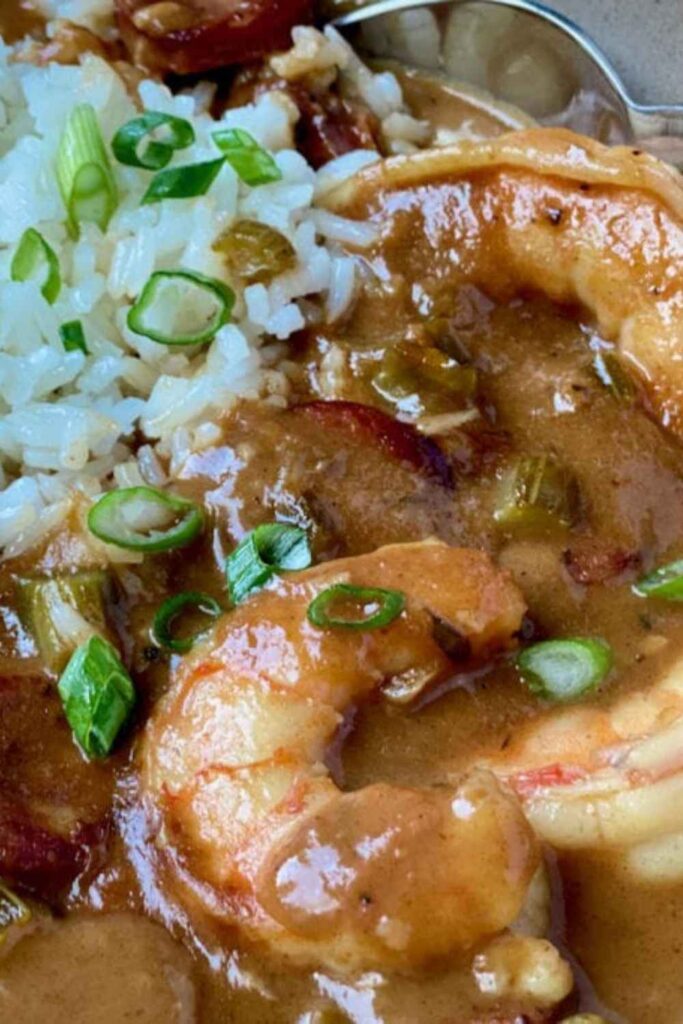 This savory gumbo is packed with shrimp, sausage, and bold Creole flavors, thickened with roux and filé powder for a traditional finish.