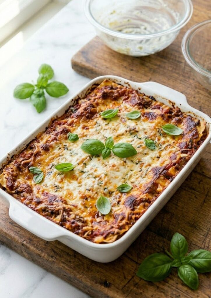 Bobby Flay Lasagna is a massive American-Italian project meal. This multilayered feast features a slow-braised Bolognese made with beef and pork shanks, a creamy Fontina béchamel, and a bright homemade marinara sauce tucked between tender pasta sheets.