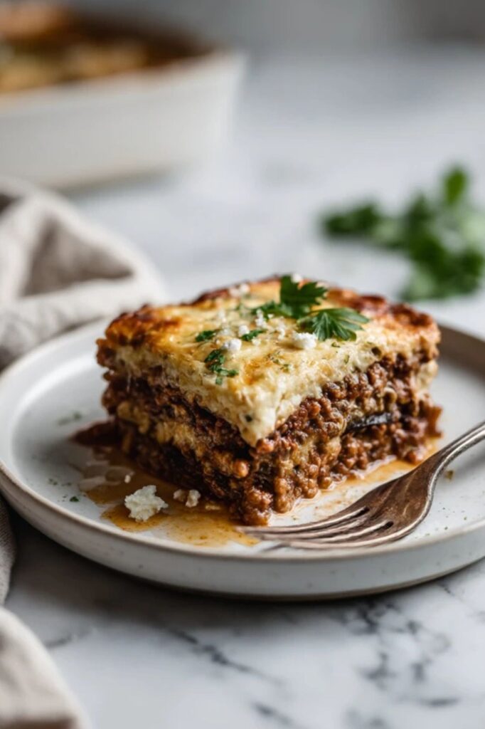 This usually happens because the eggplant wasn’t dried well enough or the meat sauce was too thin. Make sure you simmer the lamb until the liquid is almost gone and salt those eggplant slices thoroughly.