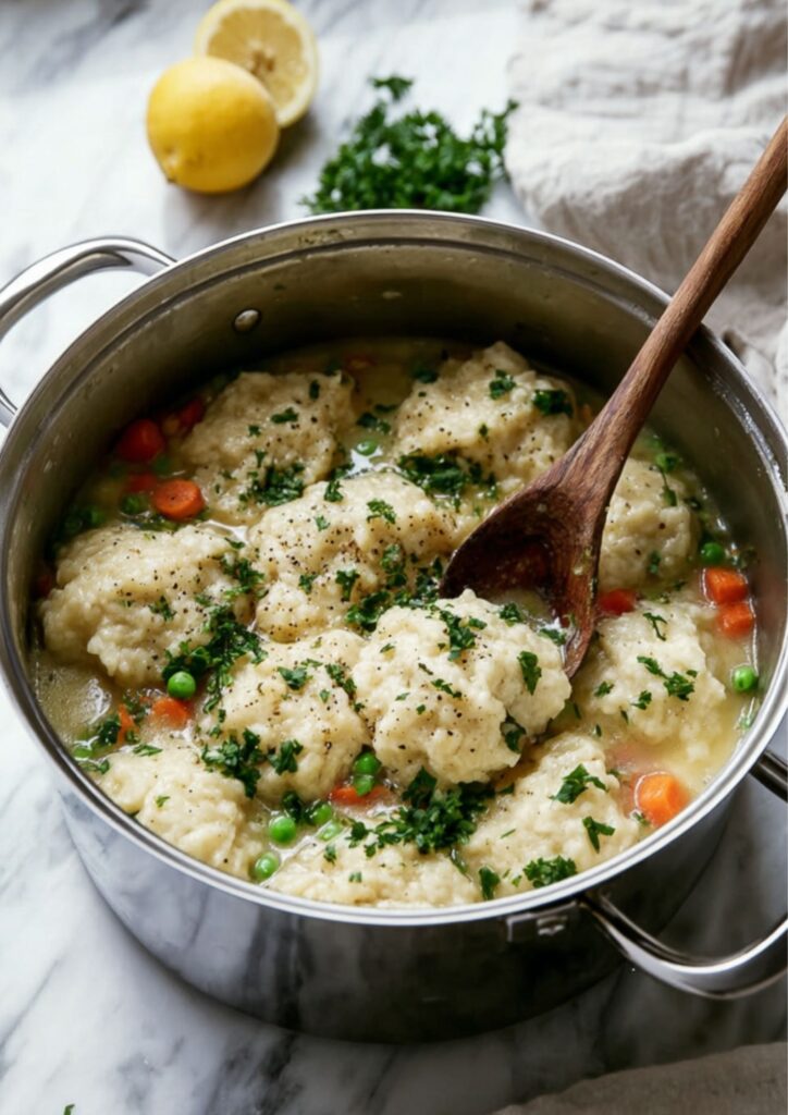 Don’t keep mixing once the flour disappears. A lumpy dough is the only way to get dumplings that stay soft and airy while they steam in the pot.