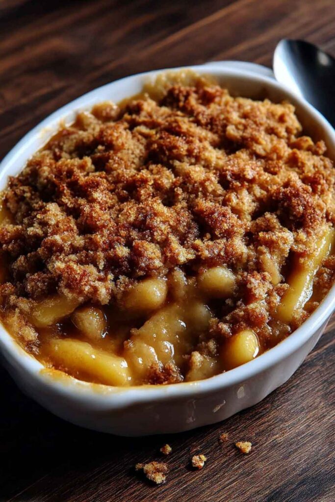 - Can I make this ahead of time? This dish is best baked fresh. However, you can make the crumble topping and prepare the apple filling (tossing it with the lemon juice to prevent browning) a few hours in advance. Store them separately in the refrigerator and assemble just before baking.