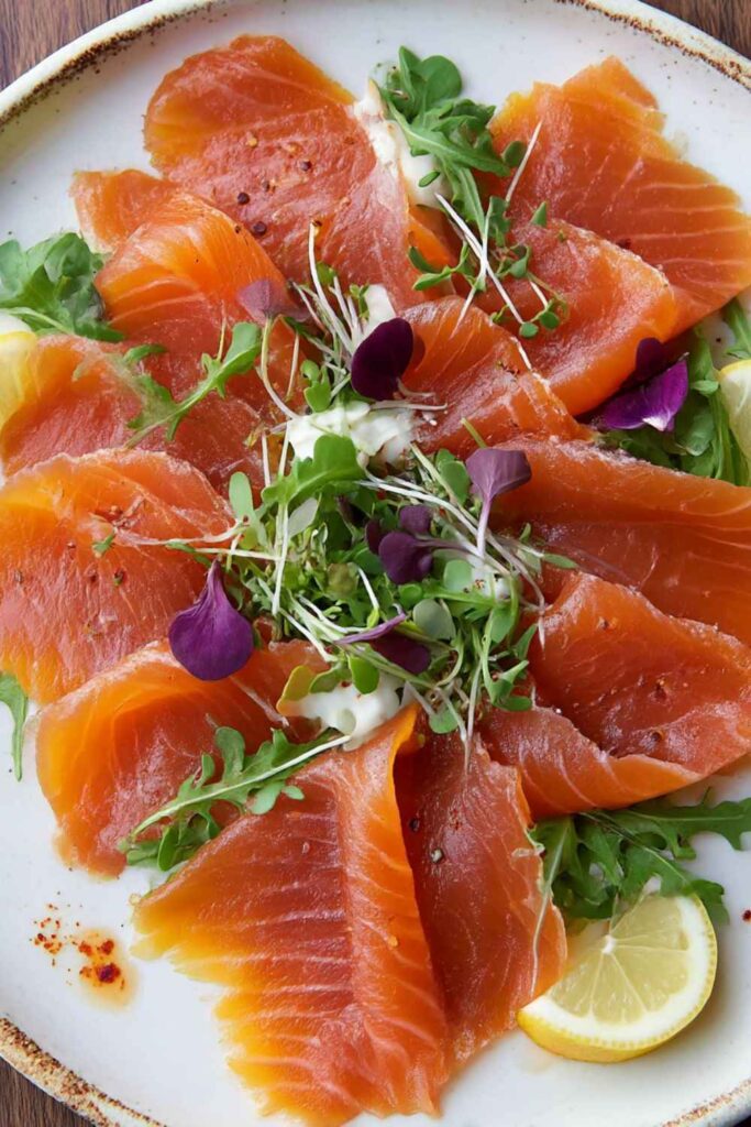 - A garnish of capers, finely diced red onion, and fresh lemon wedges.