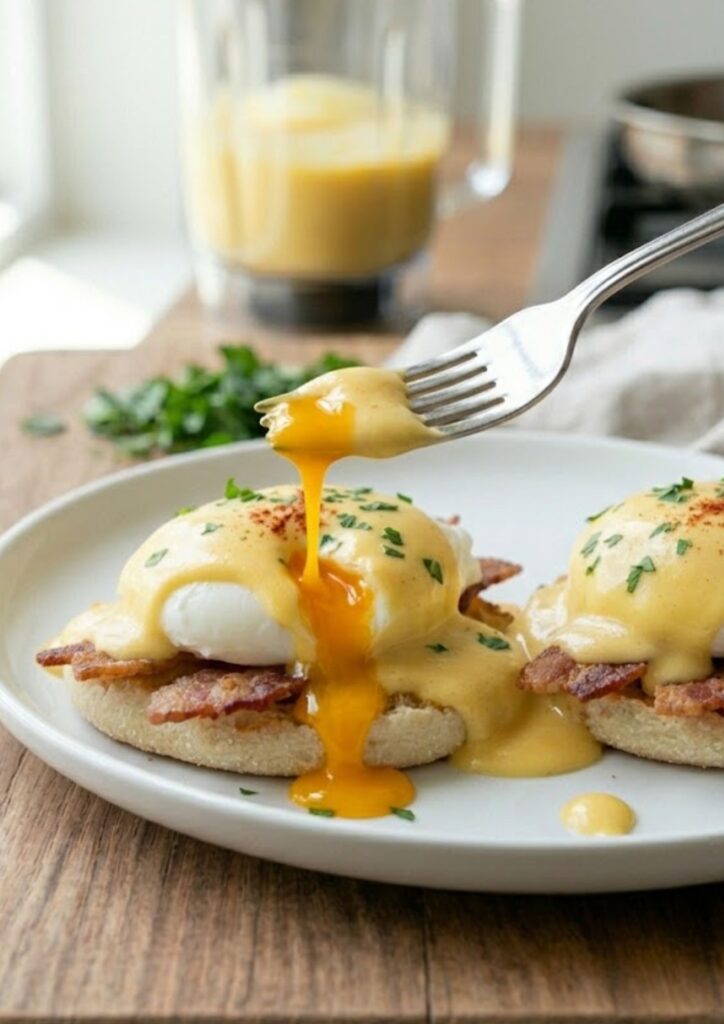 Gordon Ramsay’s Eggs Benedict is a masterclass in elevating a classic breakfast without the restaurant-level stress. By utilizing a foolproof, lightning-fast blender hollandaise and perfectly rendered cold-pan bacon, this recipe takes the intimidation right out of the dish. The combination of crispy, salty bacon, a beautifully runny poached egg, and rich, buttery hollandaise piled high on a toasted English muffin makes this the undisputed king of Sunday brunch.