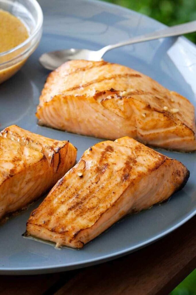 A flavorful grilled salmon dish marinated in Dijon, garlic, and soy sauce—simple, fast, and full of flavor.