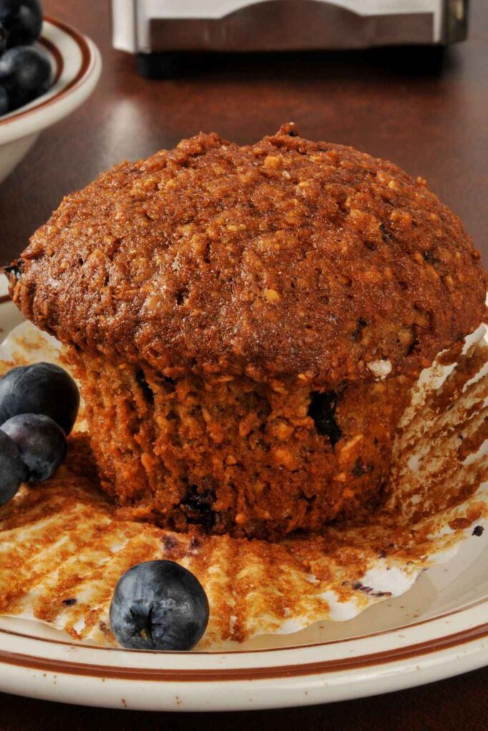 Soft, hearty muffins made with wheat bran, Greek yogurt, and blueberries—perfect for a nutritious breakfast.