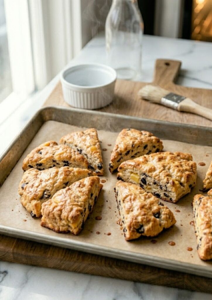 - Freezer: You can freeze the unbaked wedges! Bake them straight from the freezer—just add 3–5 minutes to the baking time. This is the best way to have “fresh” scones anytime.