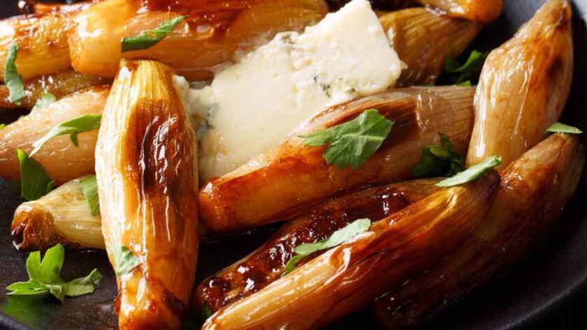 Sweet-savory roasted shallots in butter and vinegar — an easy, elegant side dish.