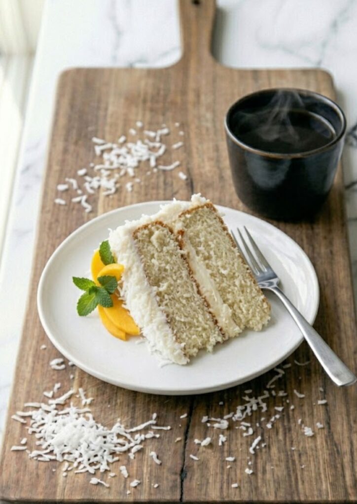 Yes, but you’ll need to toss it with a tablespoon of sugar first to match the sweetness of the bagged version. Fresh coconut also has more moisture, so the cake might take a few extra minutes in the oven.