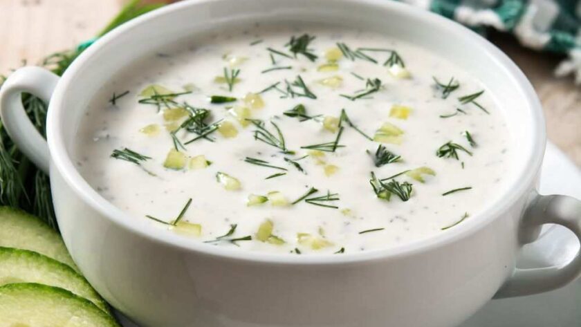 A cool and creamy cucumber soup made with fresh dill and Greek yogurt—perfect for hot summer days.