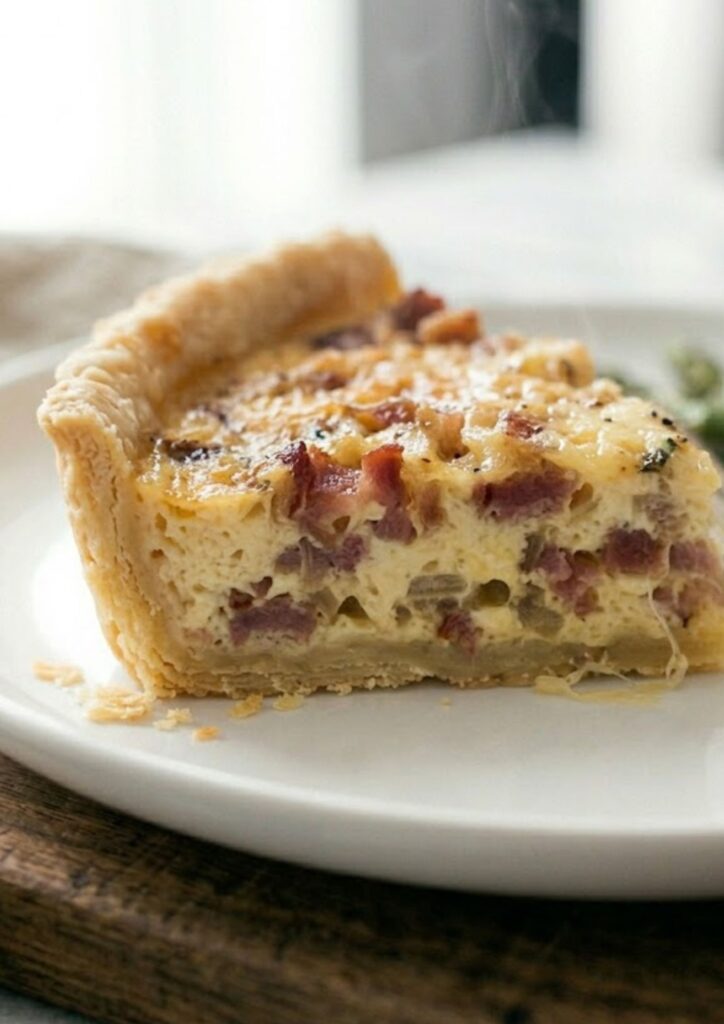 The slab bacon is doing more work than you’d think here. Unlike thin-sliced breakfast bacon, slab bacon (or pancetta) provides meaty 1/2-inch nuggets that hold their texture against the soft custard. I didn’t expect the fresh thyme to matter that much, but it’s the secret to cutting through the extreme richness of the heavy cream and Gruyère.
