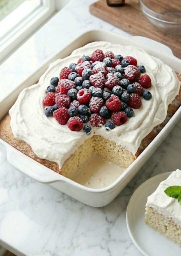 Ina Garten’s Tres Leches Cake is the “Gold Standard” for this Latin American classic. True to the Barefoot Contessa style, it focuses on high-quality extracts, real vanilla beans, and a clever use of crème fraîche to ensure the topping is sophisticated rather than cloying.