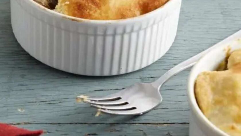 Ensure the filling is cooled slightly before adding pastry on top, and don’t overfill the dishes. -