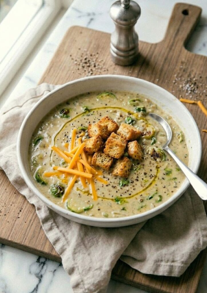 The double cream and cheddar are doing more work than you’d think here. Instead of a thin, watery broth, these ingredients emulsify to create a velvety “chowder” consistency. I’ve found that this is the ultimate “gateway” recipe for people who think they hate sprouts; once they’re swirled into a cheesy, garlic-infused cream, even the skeptics usually ask for seconds.