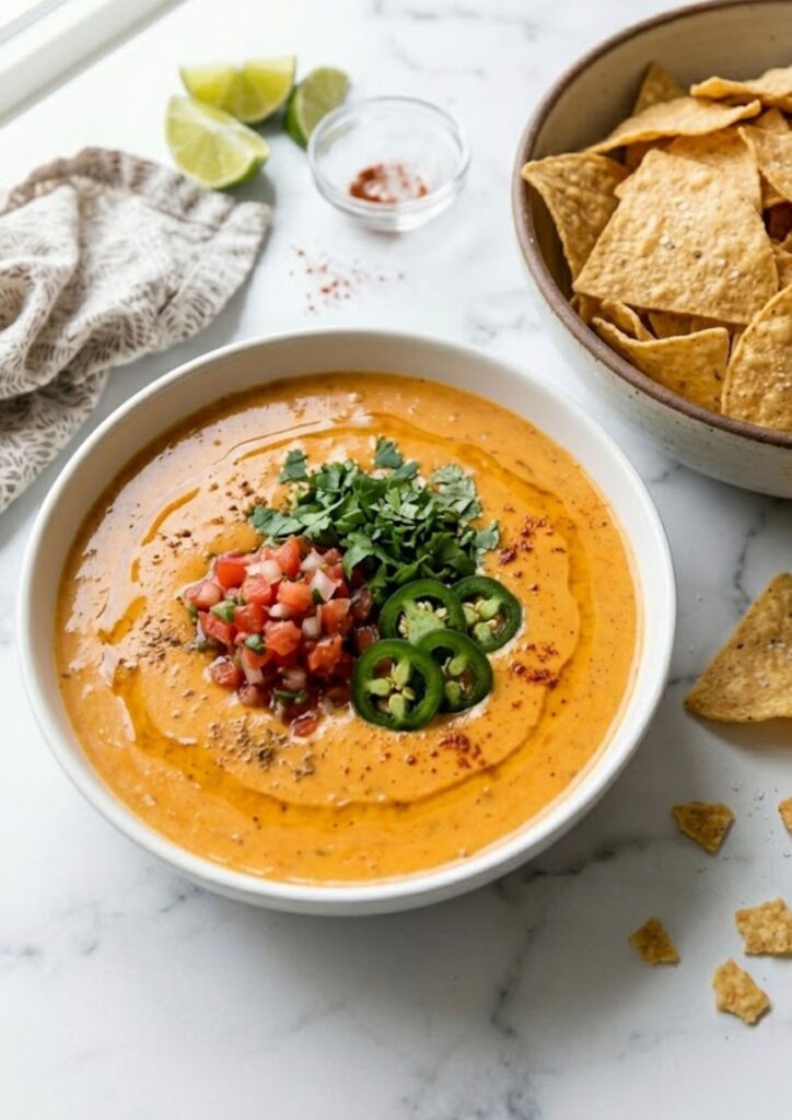 Joanna Gaines’ Queso is a staple of her Magnolia Table style—elevated Southern comfort that swaps out processed “plastic” cheeses for real, sharp cheddar and aromatic spices. The use of evaporated milk and cornstarch is a classic technique to keep real cheese from separating, resulting in a smooth, restaurant-quality dip.