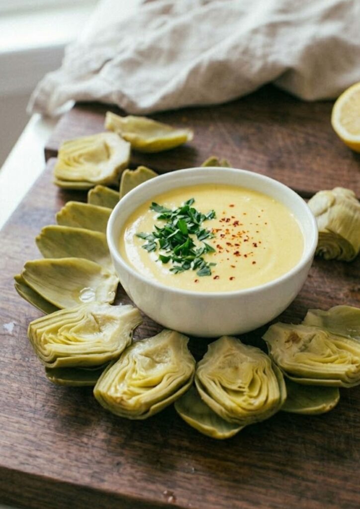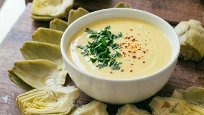 Julia Child Artichoke Hollandaise Sauce is a quintessential French appetizer featuring large artichokes slow-simmered in a fragrant infusion of chicken broth, garlic, and bay leaves until tender. The dish is centered around a rich, velvety Hollandaise sauce made by emulsifying egg yolks and fresh lemon juice with melted butter over low heat, creating a luxurious dipping experience for the “meat” of the artichoke leaves and the prized heart.