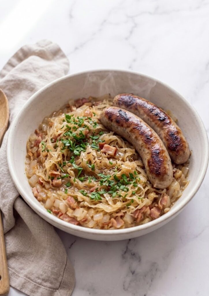 This is the ultimate partner for smoked sausages (Kielbasa or Bratwurst) and roasted pork loin. It also works beautifully as a bed for pan-seared pork chops or as a sophisticated topping for a gourmet hot dog or Reuben sandwich.
