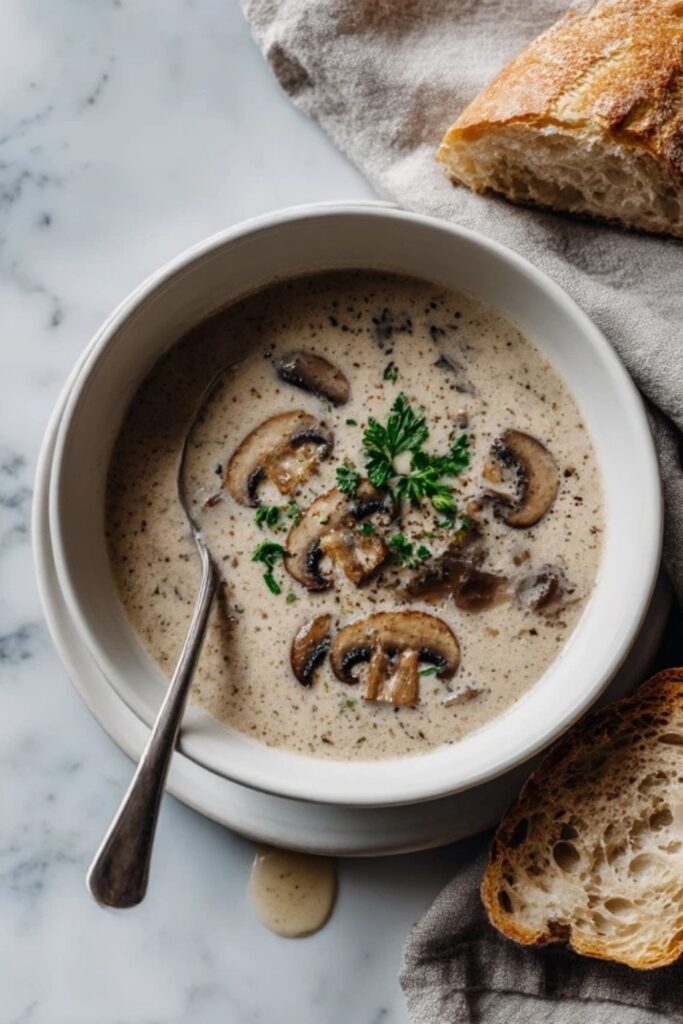 If you want something heartier, a grilled cheese sandwich made with mild white cheddar works perfectly. Some people like to scatter a few extra sautéed mushroom slices or a pinch of fresh chives on top for a bit of visual flair.