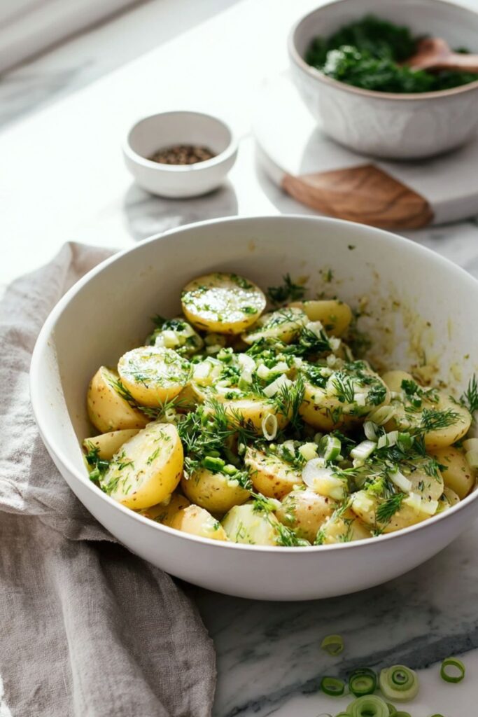 - Use Fresh Herbs: This recipe lives and dies by the freshness of the dill and parsley. Dried herbs simply won’t provide the bright, grassy notes that make this salad “French.”