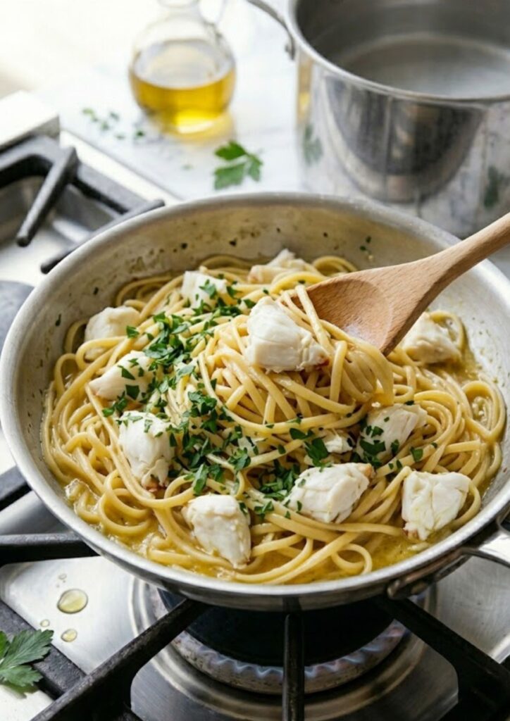 Michael Symon’s Crab Pasta is a masterclass in “less is more.” This dish relies on high-quality ingredients and technique rather than heavy creams or complex sauces. By emulsifying starchy pasta water with extra-virgin olive oil, garlic, and white wine, you create a silky, translucent glaze that coats the noodles without overshadowing the delicate sweetness of the fresh lump crab meat. It’s a sophisticated, restaurant-quality meal that comes together in the time it takes to boil a pot of water.