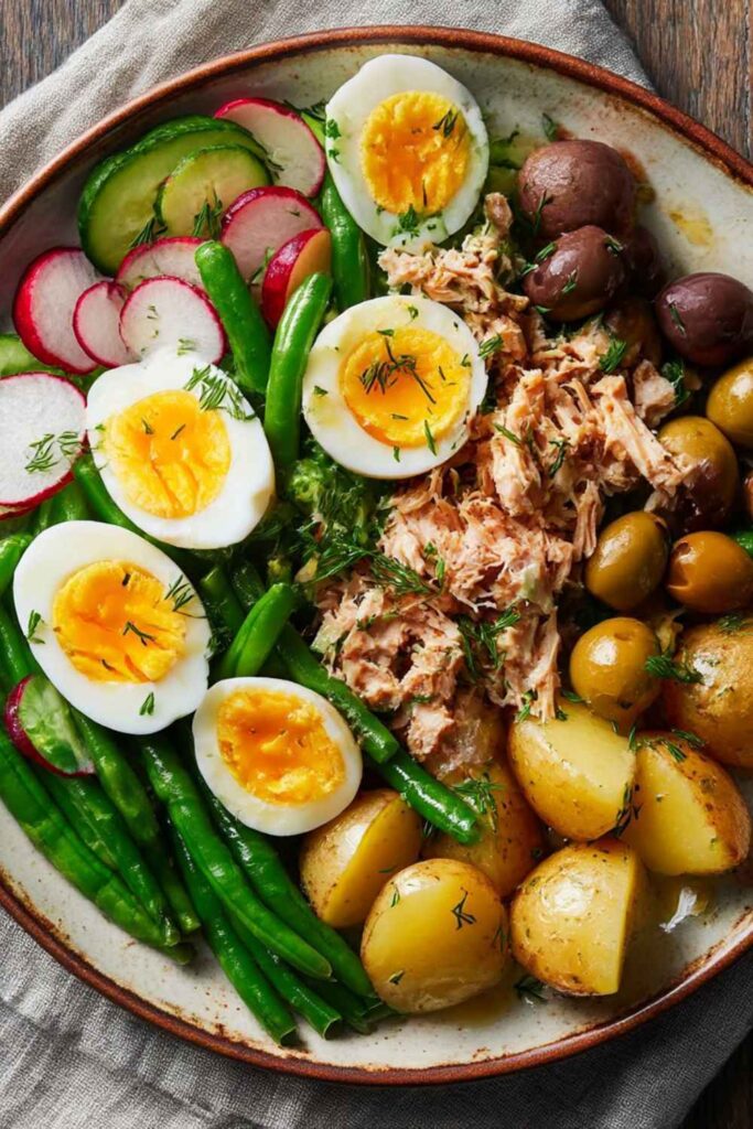 Make a restaurant-quality Tuna Niçoise salad with this foolproof method. This classic French composed salad features crisp-tender green beans, jammy 7-minute eggs, flaky oil-packed tuna, …