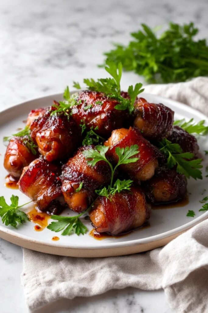 Paula Deen Bacon Wrapped Chicken Recipe is a Southern dinner favorite where juicy breasts get seasoned with garlic and onion. Thick slices of smoky pork wrap around the meat, held together by a sweet glaze of brown sugar and a kick of chili powder.