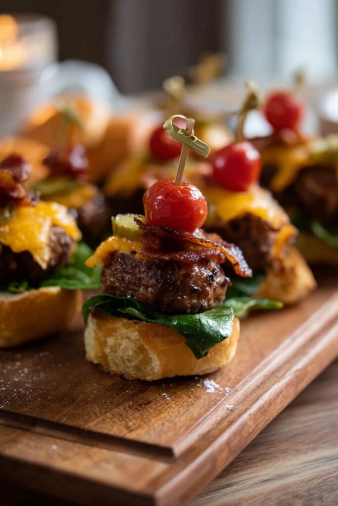 All the flavor of a bacon cheeseburger packed into a perfect, bunless, low-carb bite, secured on a toothpick for easy party snacking.