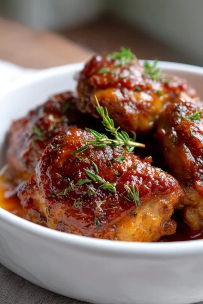 Pioneer Woman Barbecue Chicken Thighs are an American dinner favorite made with bone-in poultry and a tangy homemade sauce. This stovetop method uses peach preserves, bottled barbecue sauce, and lemon juice to create a sticky coating.