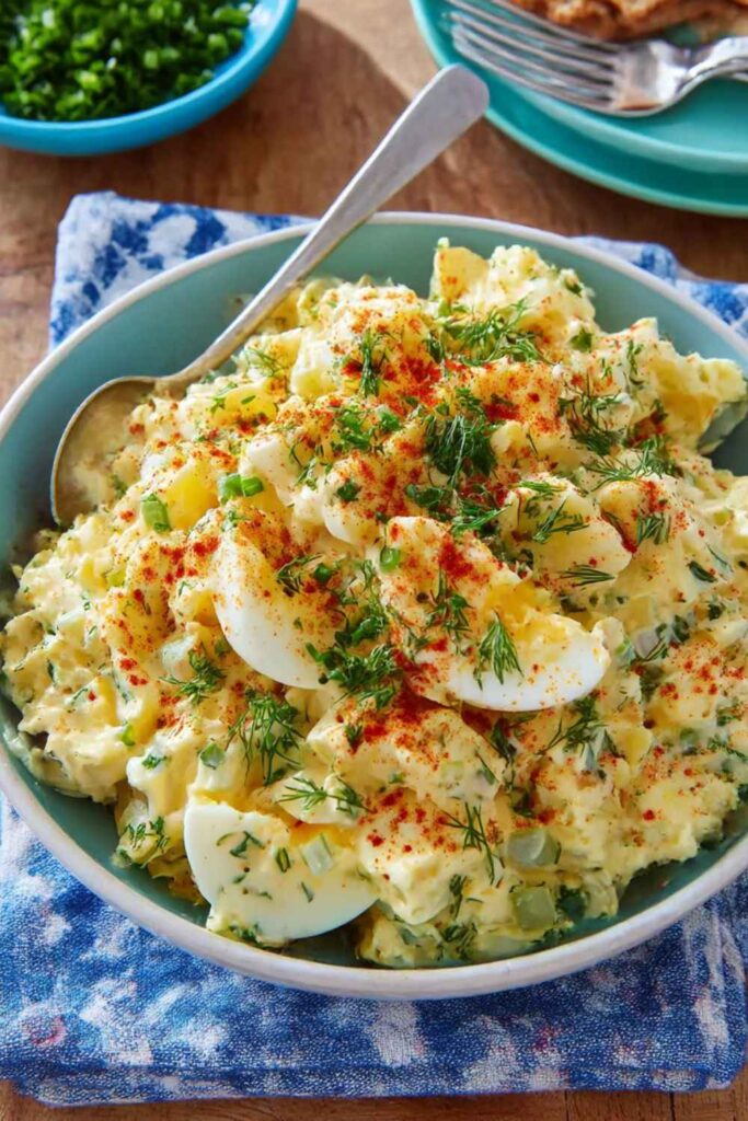 - Serve: Sprinkle the chilled salad with extra chives, salt, pepper, and paprika before serving.