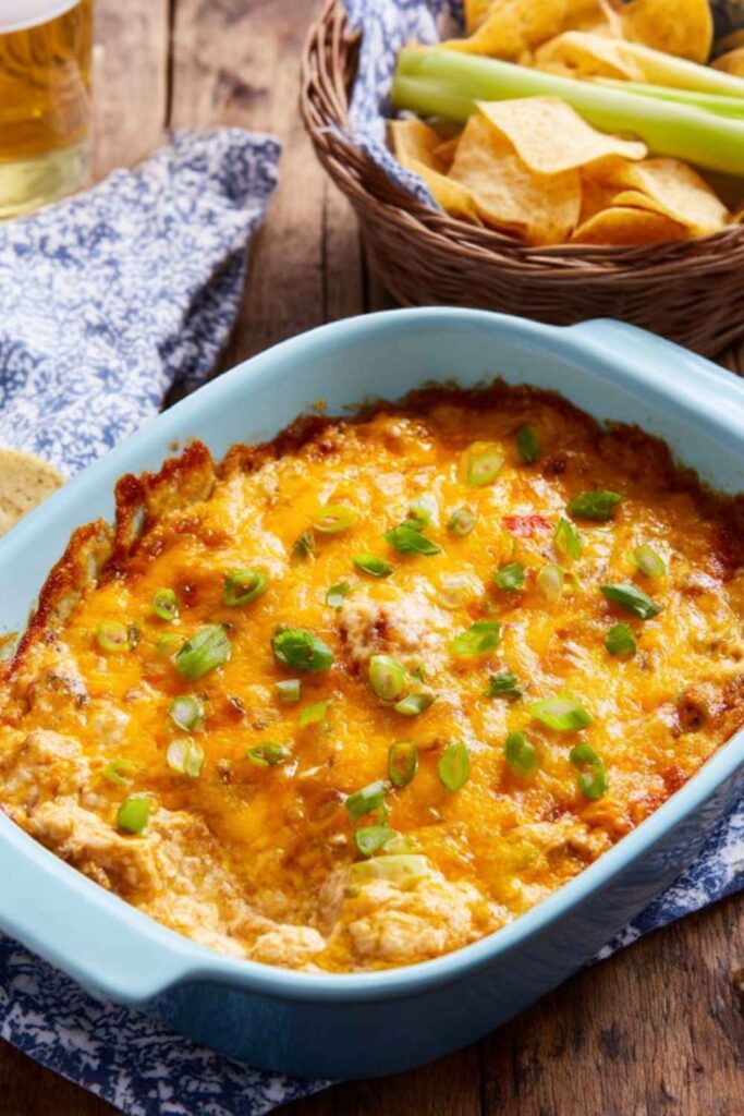 This Pioneer Woman Buffalo Chicken Dip is a creamy and spicy recipe, which is made with tender rotisserie chicken and two kinds of cheese. It’s the ultimate party appetizer, ready in about 30 minutes.