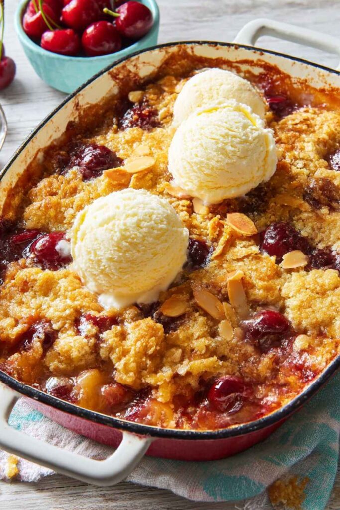 - Cool and Serve: Let the dump cake cool for a few minutes before serving. It’s best served warm, topped with a generous scoop of cherry-vanilla ice cream.