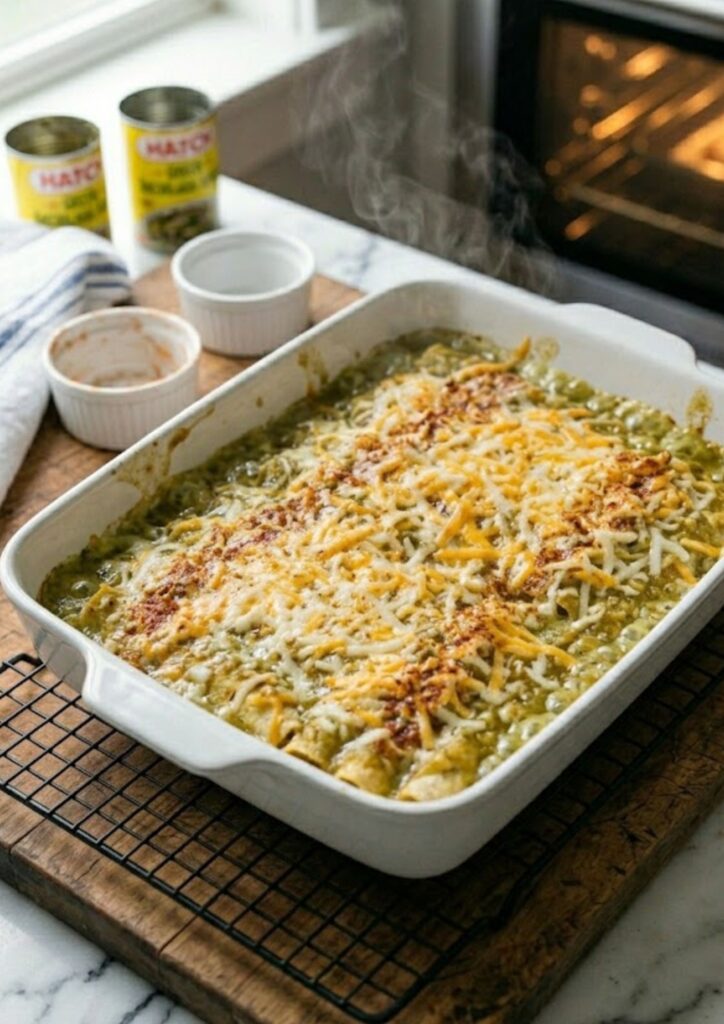 The caramelized onions are doing more work than you’d think here. Most recipes just throw raw onions inside, but Ree Drummond’s method of browning them in the chicken drippings adds a jammy sweetness that balances the acidity of the green sauce. I didn’t expect the 20-minute rest at the end to matter that much, but it’s the secret to getting a clean scoop instead of a mountain of loose cheese and shredded meat.