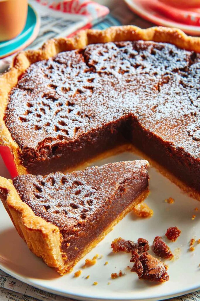 A classic, old-fashioned Southern dessert with a rich, dense, and fudgy chocolate custard filling that bakes up with a signature crackled top.