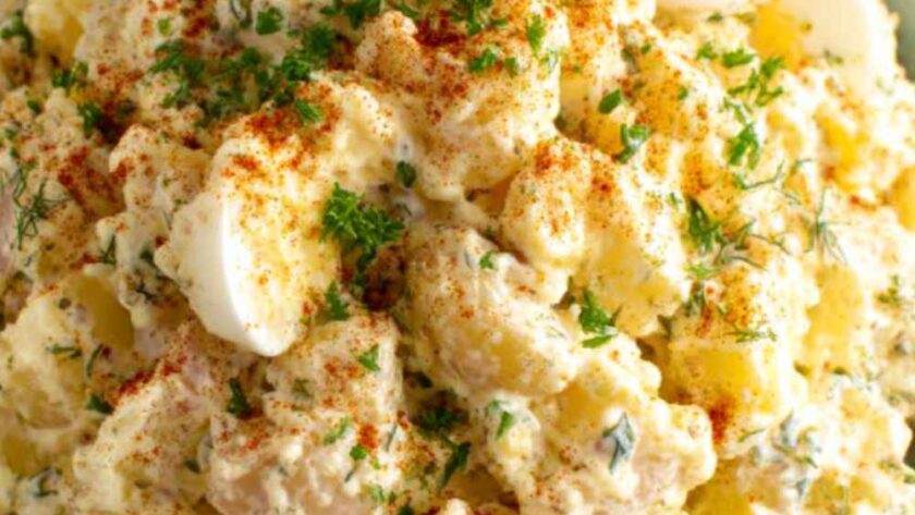 This Pioneer Woman Deviled Egg Potato Salad is a creamy and tangy recipe, which is made with mashed hard-boiled egg yolks and tender Yukon potatoes. It’s the perfect side dish for a potluck, ready in about 45 minutes, plus chilling time.