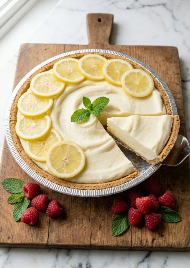 Pioneer Woman Frozen Lemonade Pie is a refreshing American dessert that’s perfect for hot summer days. This chilled treat uses a buttery graham cracker crust, tangy lemon zest, and a creamy filling made from sweetened condensed milk and fluffy whipped topping.