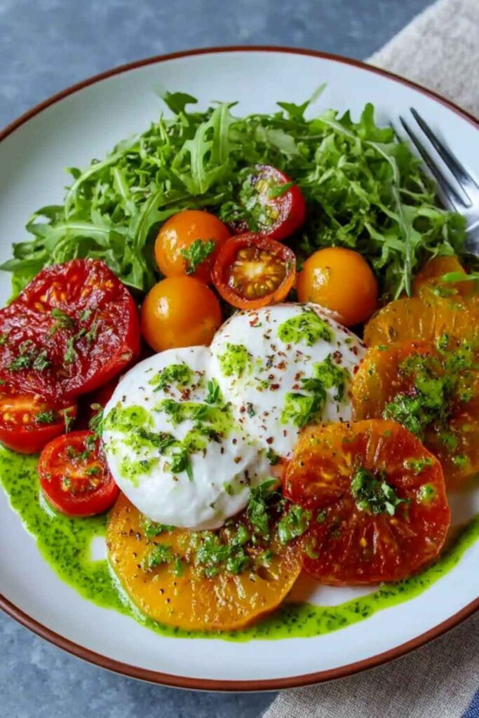 - Best Eaten Fresh: This salad is best assembled and enjoyed immediately, as the fresh tomatoes and burrata are at their peak.