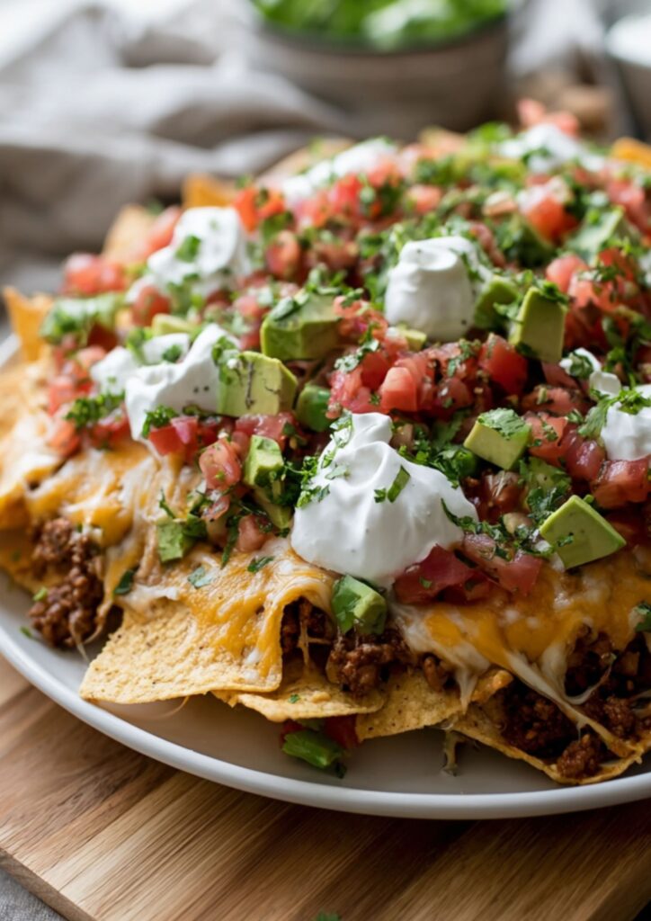 Pioneer Woman Loaded Nachos are a “triple-decker” style crowd-pleaser designed to eliminate the issue of dry, unadorned chips. Featuring a hearty base of ground beef and beans simmered in a warm blend of cumin, paprika, and chili powder, these nachos are layered extensively with a duo of melted Cheddar and Monterey Jack. The rich, savory layers are balanced by a vibrant, cold Pico de Gallo made from fresh Roma tomatoes and lime juice, ensuring a dynamic contrast in every bite.