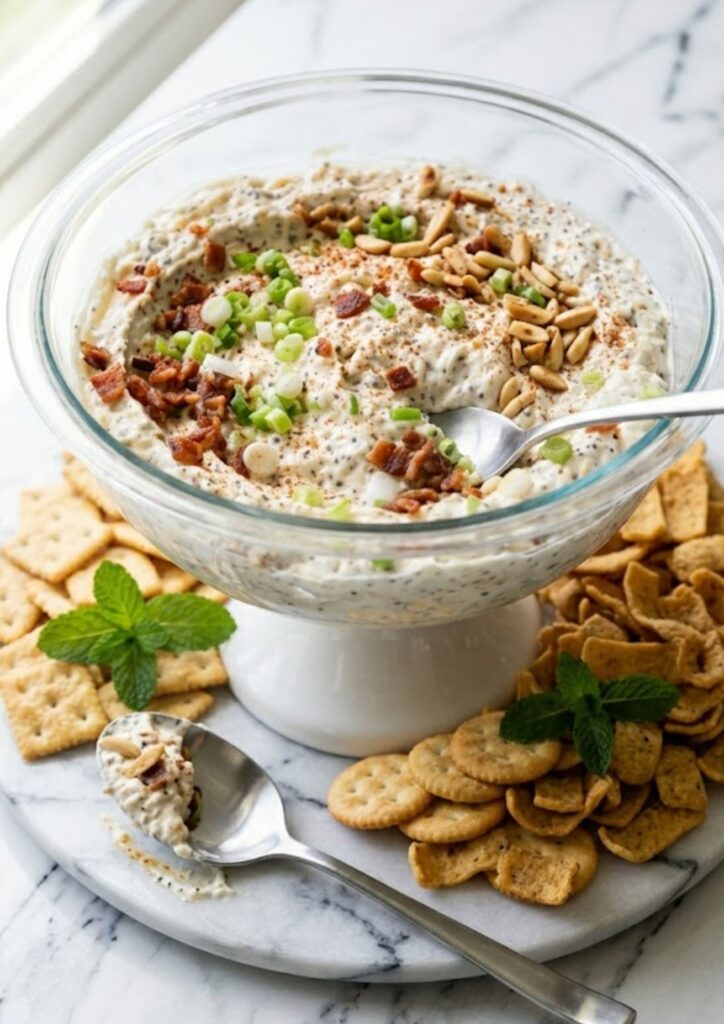 - Garnish and serve: Right before the guests arrive, sprinkle the remaining green onions over the top for a pop of fresh color. Serve with a mountain of buttery crackers or sturdy corn chips.