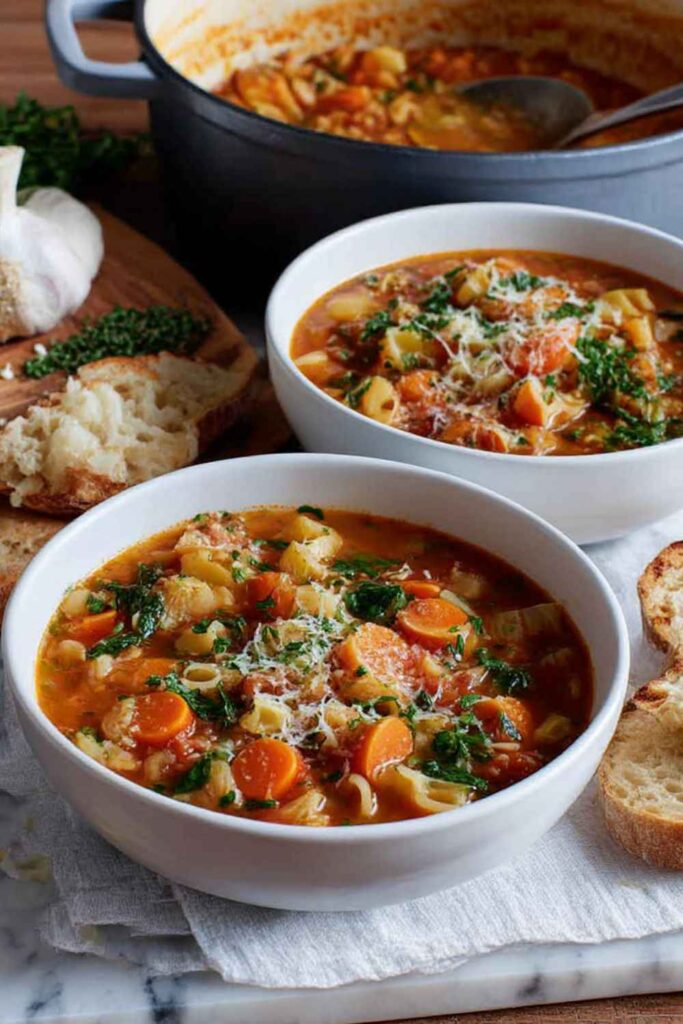 A hearty, fresh, and flavorful vegetarian take on the classic Italian vegetable soup, packed with beans, vegetables, and pasta.
