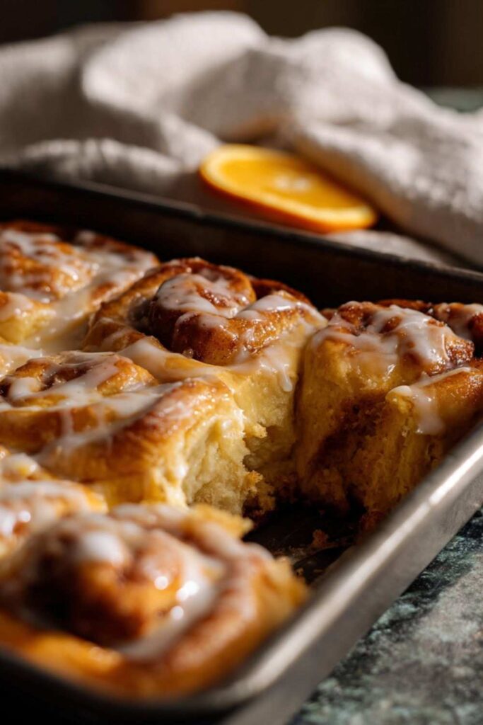 - Glaze and serve: Let the hot rolls cool for a few minutes, then pour the orange glaze over them. Serve warm.