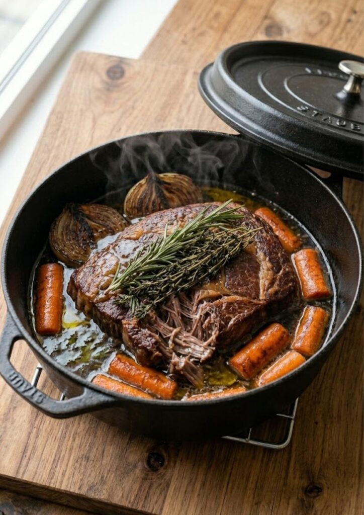 Pioneer Woman Pot Roast is a classic American comfort dinner that feeds a large family. This slow-cooked meal uses a whole chuck roast seared until crusty and braised with red wine, fresh herbs, and chunky carrots for a tender, fall-apart finish.