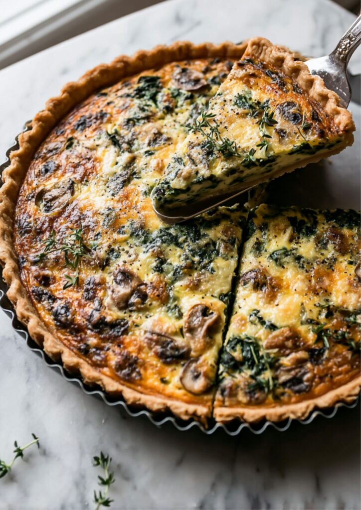 Pioneer Woman Spinach Mushroom Quiche is a classic American brunch dish featuring an earthy vegetable filling and nutty melted cheese. This recipe uses a mix of sautéed garlic mushrooms and a velvety egg custard to create a savory, sliceable pie.