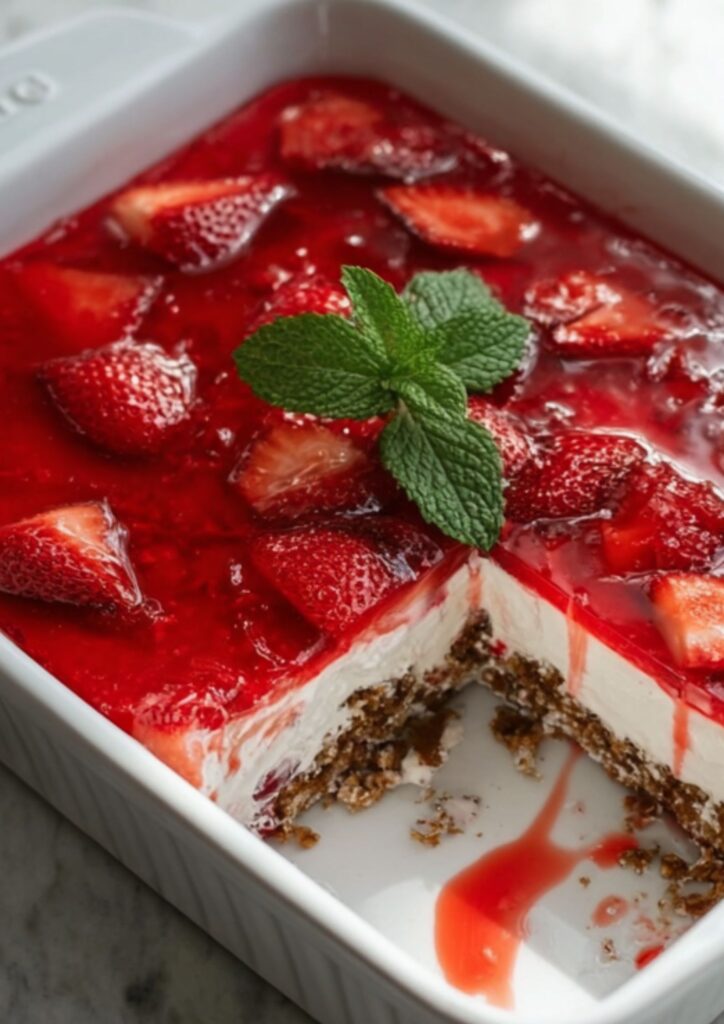Pioneer Woman Strawberry Pretzel Salad is a nostalgic, three-tiered Southern dessert that perfectly balances salty, sweet, and tangy profiles. It features a crunchy, buttery pretzel crust, a velvety middle layer of whipped cream, sour cream, and cream cheese, and a vibrant top layer of strawberry gelatin packed with fresh fruit. Success relies on “sealing” the cream layer to the edges of the pan to keep the pretzel base crisp and the stripes perfectly distinct.