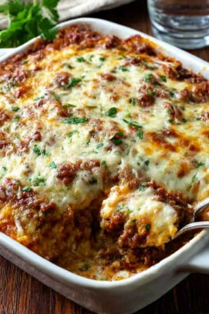 To make a lower-carb version, you can simply omit the rice from the meat mixture. The casserole will be just as flavorful, with a higher ratio of meat and vegetables.
