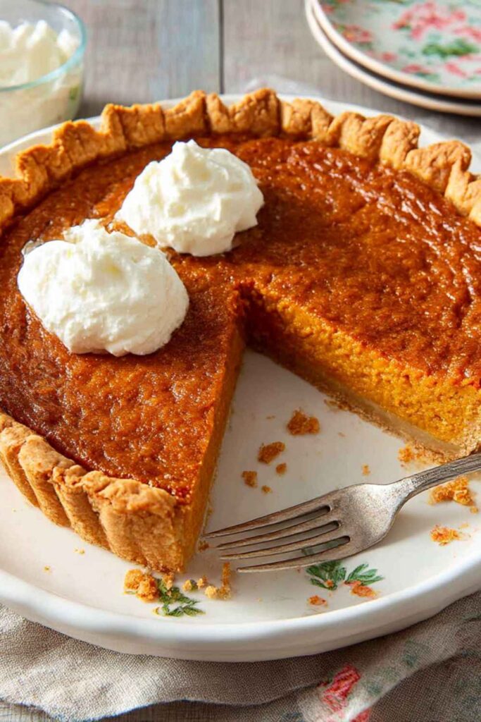 This pie is traditionally served as a holiday dessert, especially for Thanksgiving. It is absolutely perfect with its intended partner, the Bourbon Whipped Cream. A simple cup of black coffee or a scoop of vanilla ice cream also pairs wonderfully with its warm spice flavors.