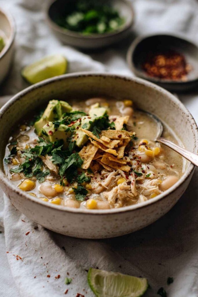 - Can I make this in a slow cooker? Absolutely. Sauté the onion, garlic, and spices on the stovetop first. Then, transfer them to the slow cooker along with the broth, beans, and corn. Cook on low for 4-6 hours. Blend a portion, then stir in the chicken, yogurt, and lime juice during the last 30 minutes of cooking.