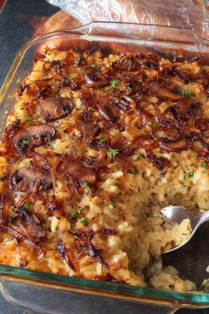 - u003cliu003eSautéing the mushrooms and onions separately before adding them to the casserole develops a deeper, richer flavor.u003c/liu003eu003cliu003eThis is a perfect make-ahead side dish; it can be fully baked and then reheated before serving.u003c/liu003eu003cliu003eFor a vegetarian version, simply swap the chicken broth for vegetable broth.u003c/liu003eu003cliu003eThe rice is fully cooked when the grains have split open and are tender.u003c/liu003e